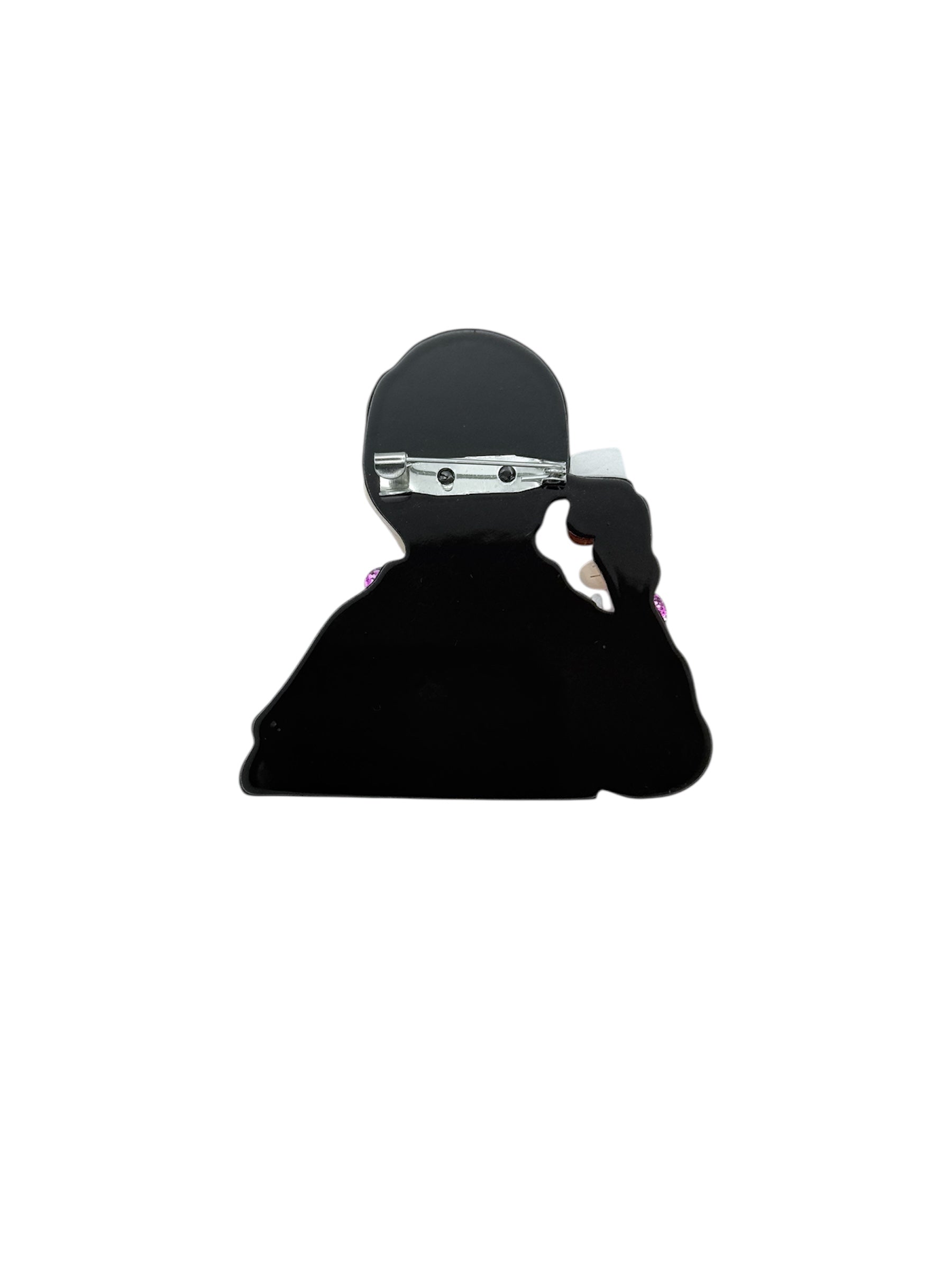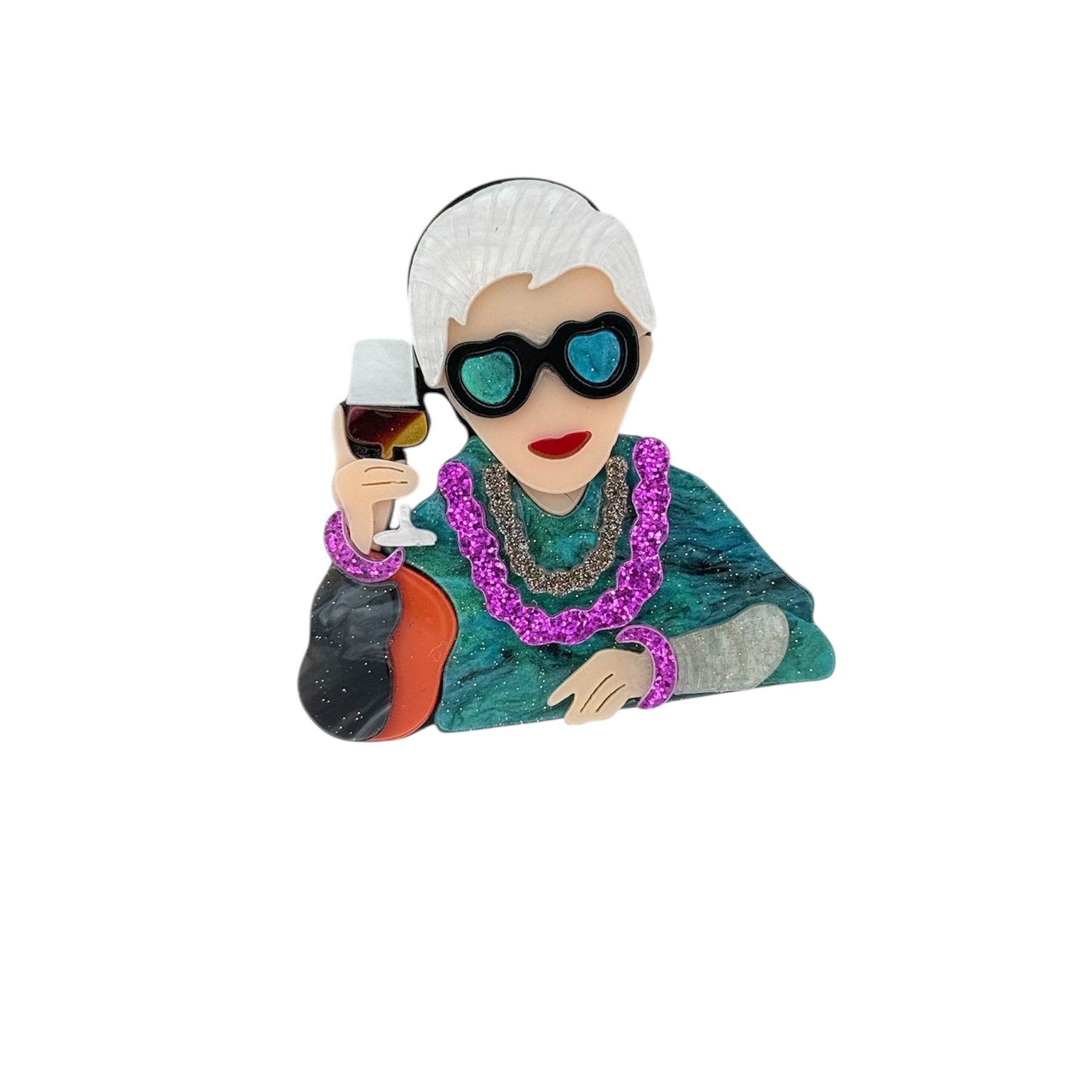 Este broche es puro encanto y estilo. Representa a una señora elegante y sofisticada con gafas en forma de corazón y una copa de vino en la mano, lista para disfrutar de la vida con glamour y actitud. Ideal para quienes adoran los accesorios con carácter y un toque de humor refinado.