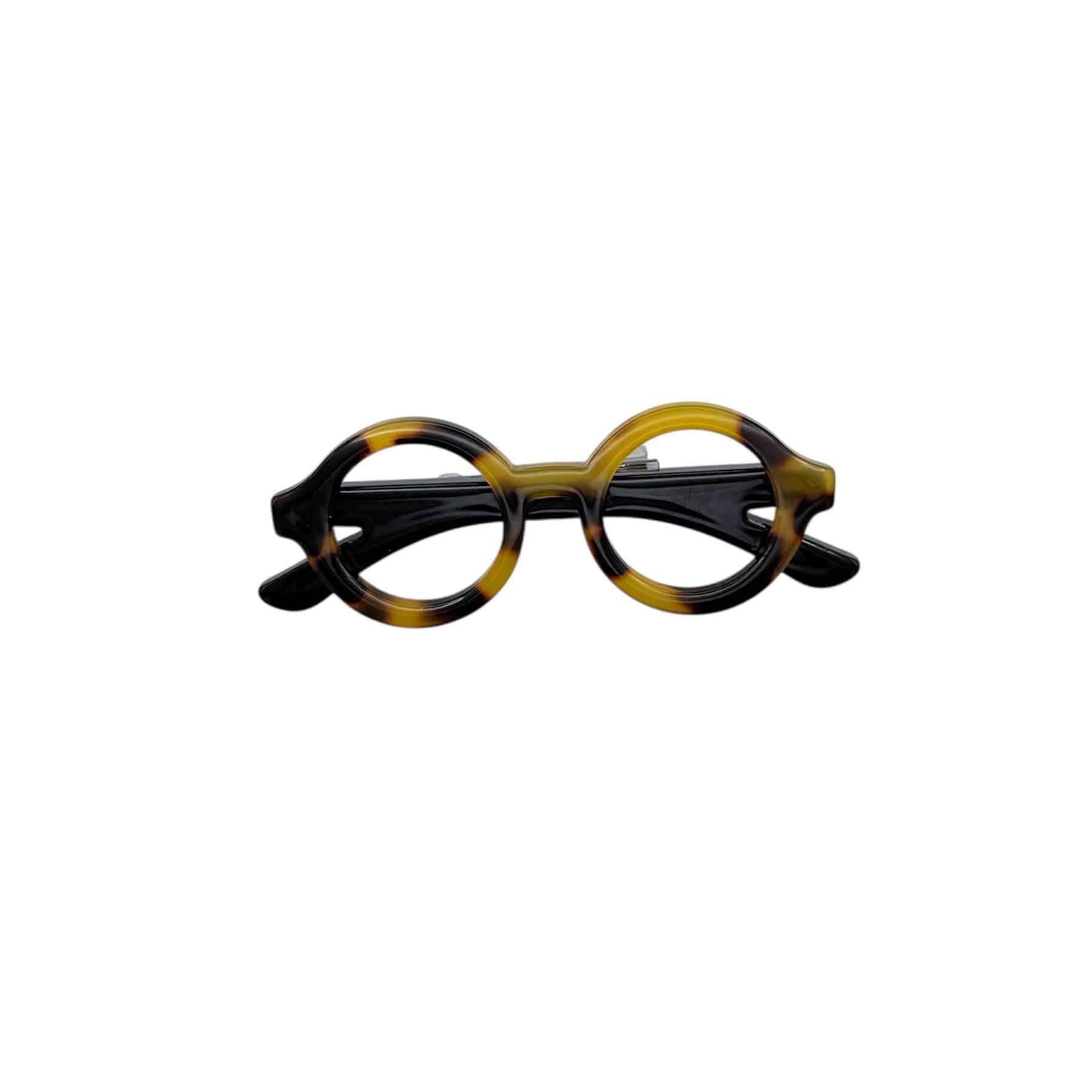 Este broche con forma de gafas circulares es un homenaje al estilo atemporal. Con una montura en resina que imita el tradicional patrón carey en tonos marrones y ámbar, aporta un toque elegante y nostálgico a cualquier prenda. Un accesorio versátil que combina fácilmente con estilos casuales o vintage.
