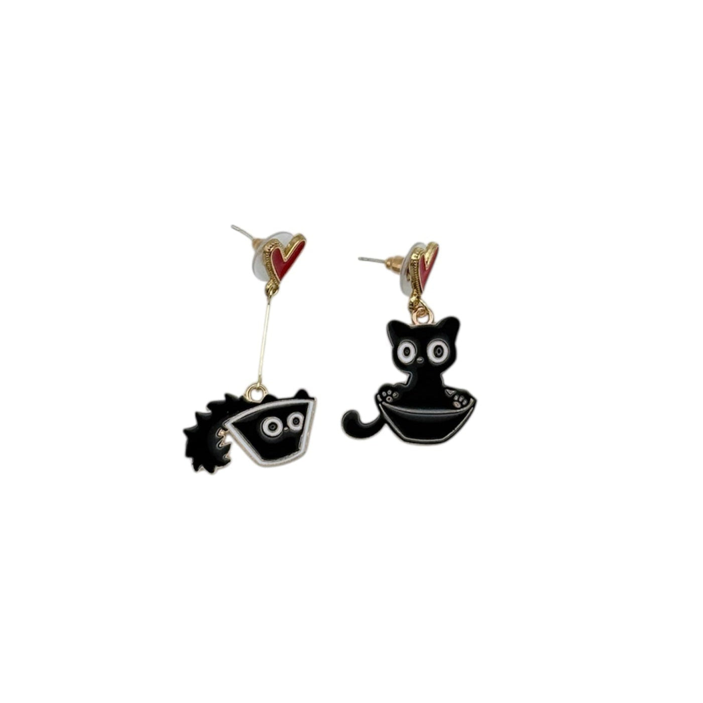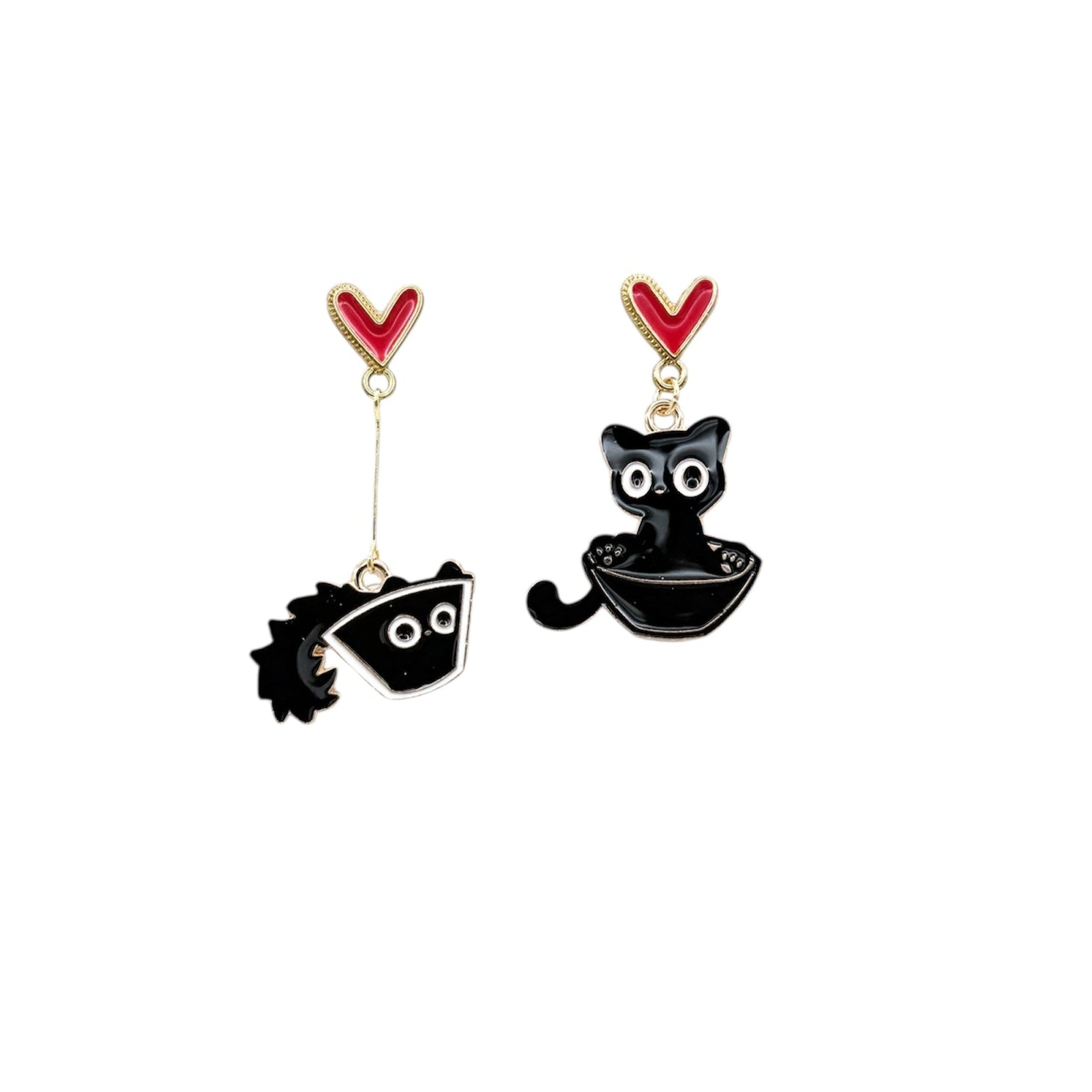 Divertidos y llenos de vida, estos pendientes asimétricos de acero inoxidable esmaltado capturan a dos gatos juguetones: uno asomándose desde un cuenco y el otro completamente metido en él. Un diseño lleno de movimiento y simpatía que aportará un toque alegre a cualquier look.
